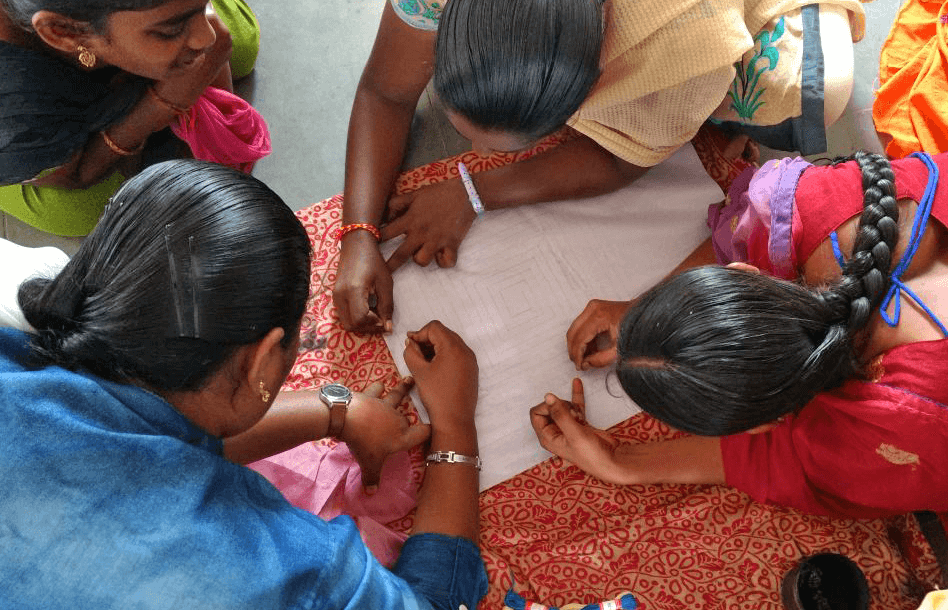 We train and upskill the local women artisans in Up cycling and provide employment to them. Incorporating traditional crafts with the art of Upcycling is what the amazing artisans do at Virmansha.
